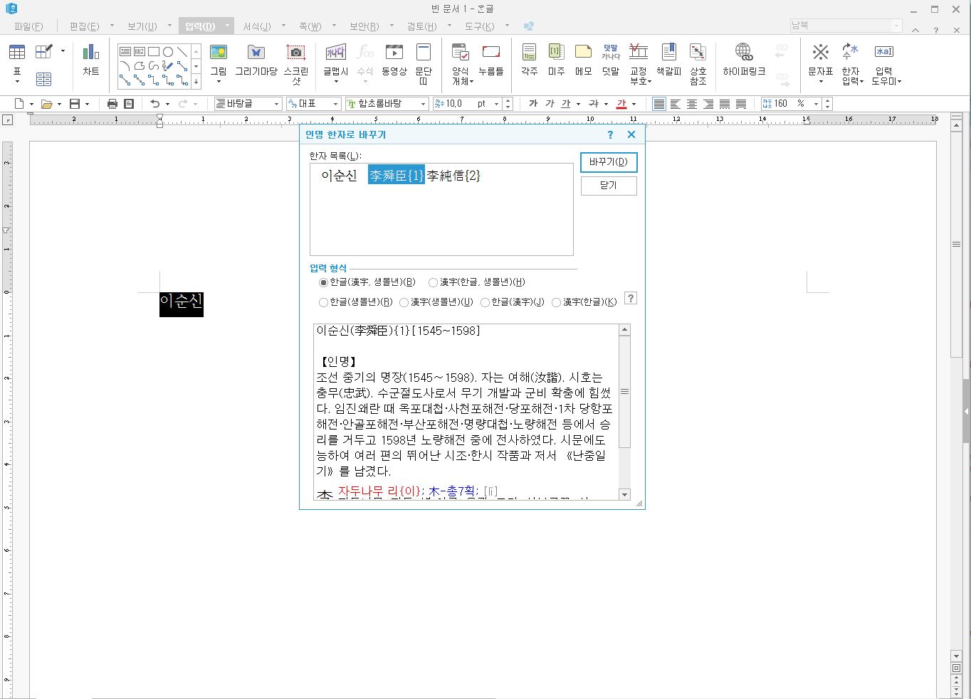 인명사전에서 한자로 바꾸기_한컴오피스 NEO