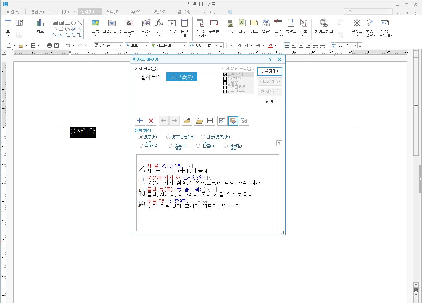한자로 바꾸기_한컴오피스 2018